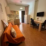 A kitchen at this apartment features a refrigerator and an oven. The nearest bus stop, Olimpia, is around 200 metres away.